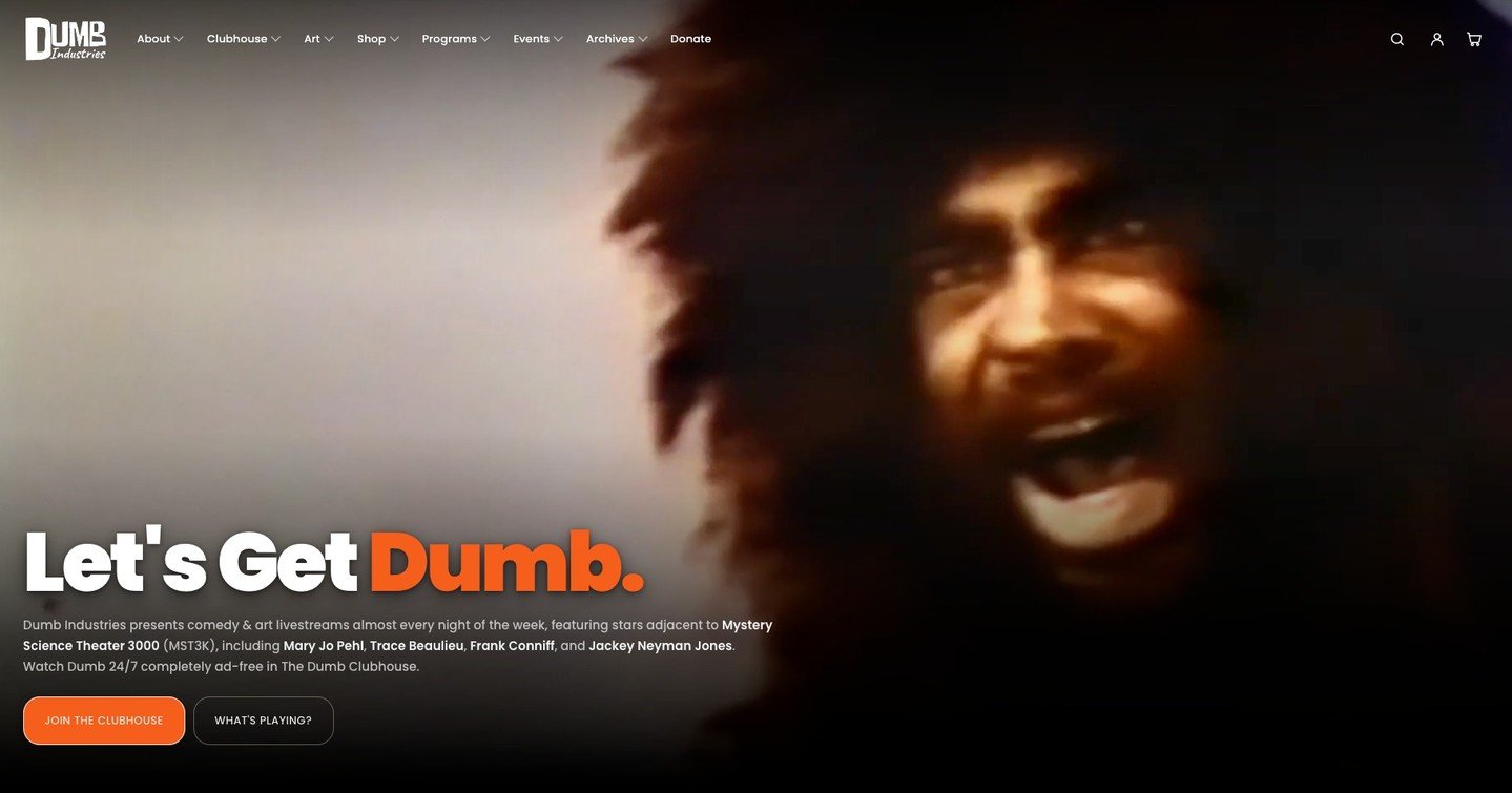 Founded in 2020, Dumb Industries began producing monthly livestreams for The Mads Are Back featuring Mystery Science Theater 3000 alumni Trace Beaulieu & Frank Conniff.